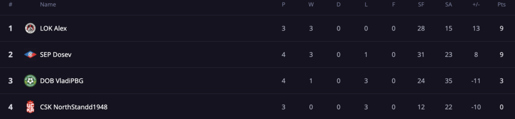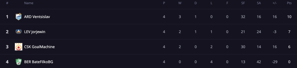 класиране група А, след 4-ти състезателен ден